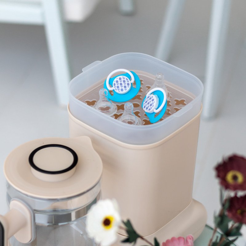 | وصف المنتج ومبدأ العمل | جهازين في جهاز واحد غلاية كهربائية لتسخين الماء لدرجة تصل 100c وكذلك جهاز لتعقيم الرضاعات بدرجة حرارة عالية قادرة على قتل البكتيريا وغيرها كما انه يتسع لعدد كبير من الرضاعات واللهايات والألعاب، كما انه جهاز عملي ومهم بالدرجة الأولى لتخفيف عناء الأمهات |